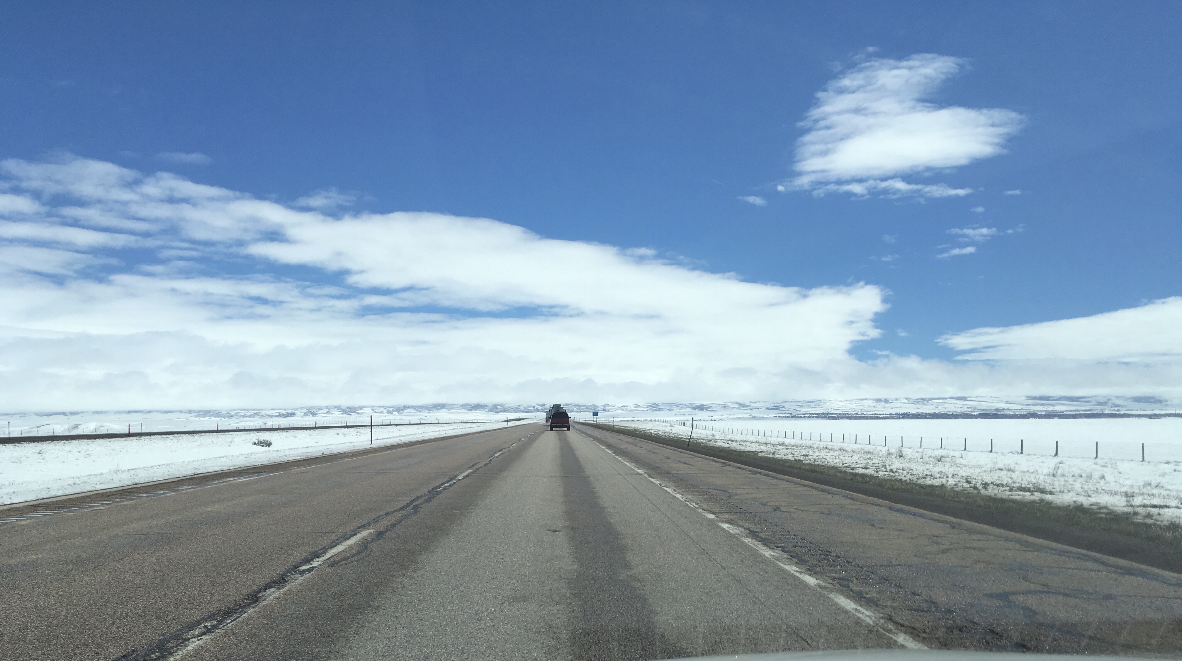 I had my sights on Denver, Colorado as the next stop over in the journey back home. The cold morning in Wyoming started off with strong coffee, prayer and meditation. I gassed up and hit the road. Snow covered the ground but all roads were back open. I-80 had been closed in some parts due to a Spring storm that blew through, with two more storms predicted by the weekend.